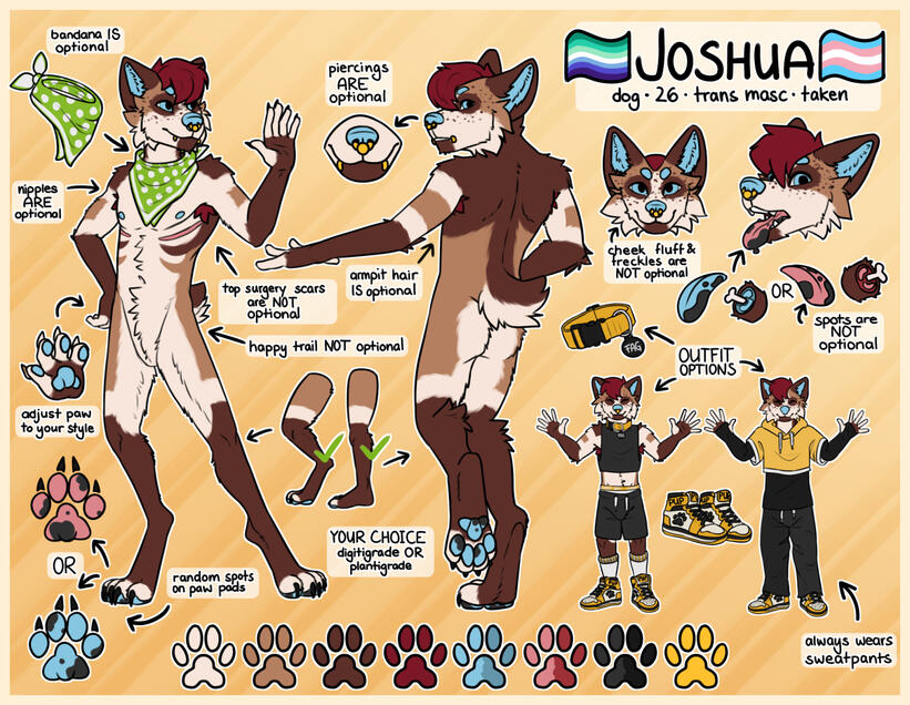 At this time, I only accept PayPal as payment.To commission me, send me a DM on any social (found below)!Sketching will start within a few days of receiving full payment.You will have the option to request changes after the sketch is done and after the flat colors are done respectively.I work slowly. Do not worry if you don't hear anything for a few days, I promise I have not forgotten about you!
